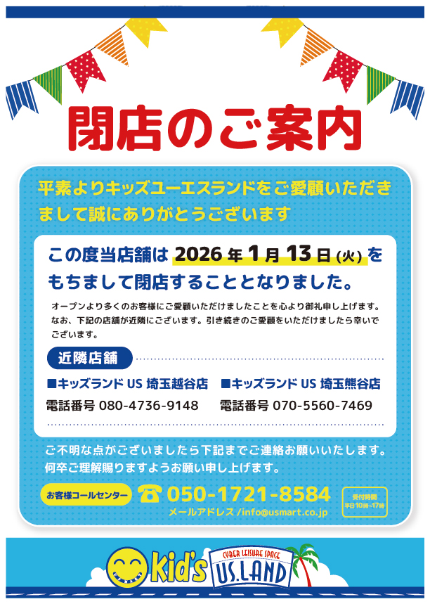 - 会員カードはキッズユーエスランド全店でお使いになれます